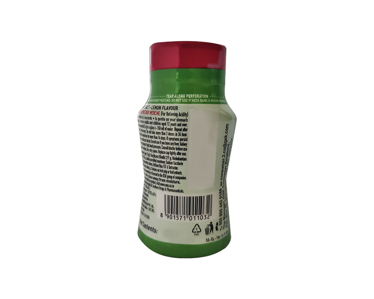 Quickly relieve the burning sensation of acid with Eno Fruit Salt Lemon Flavor. This is an antacid that quickly reduces acidity by cooling. Its rapid cooling technology instantly gives you a cooling sensation, so you know relief is on the way.