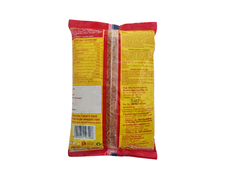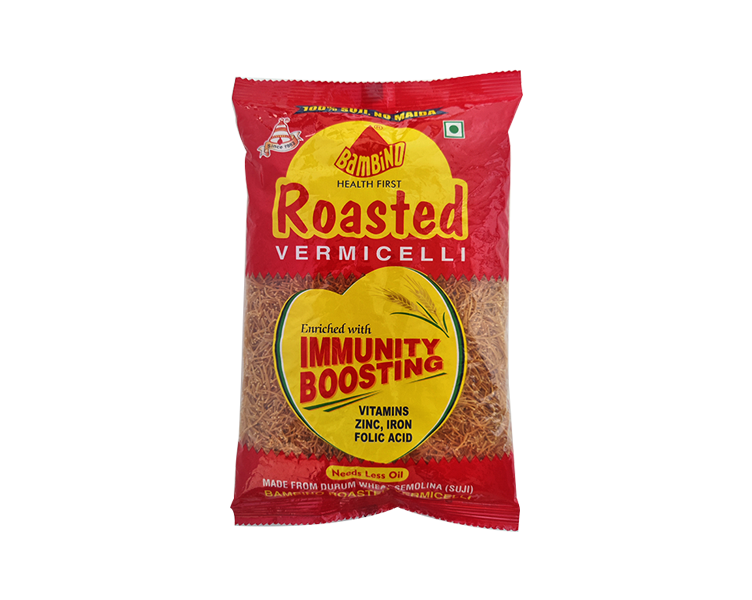 Bambino Roasted Vermicelli is a simple, healthy and nutritious breakfast recipe. It's easy to eat, high in fiber, and low in calories. It is non-sticky and does not form lumps.They can be used in so many delicious ways! Make creamy,sweet kheer, savory upma, or toss it with boiled veggies for a wholesome pulao. It's a very tasty snack at night.
