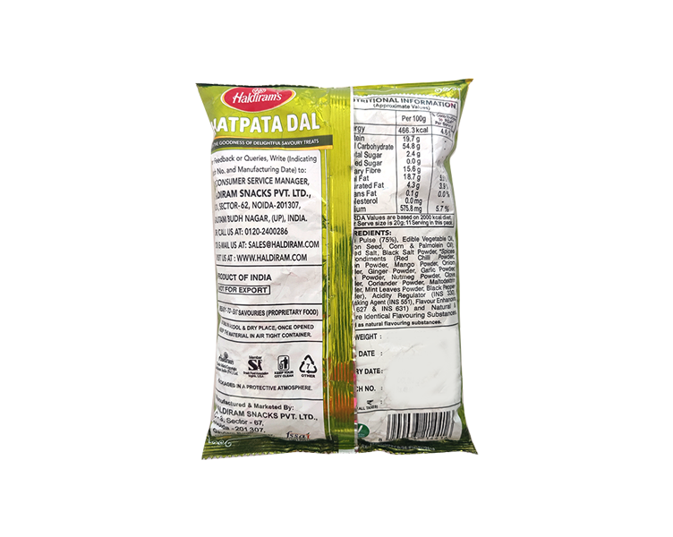 Chatpata Dal is a classic Haldiram snack that is both aromatic and spicy. These crunchy,lentils are spiced and added texture to every meal. This snack is just what you need after a long day!