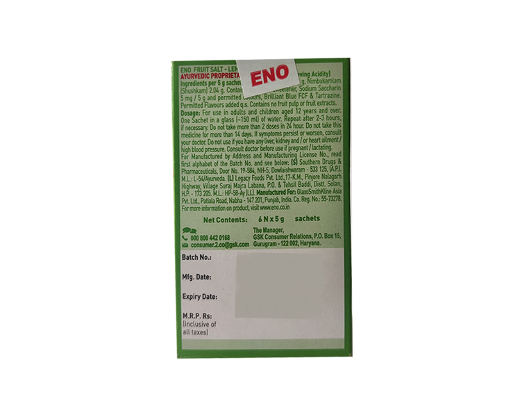 Quickly relieve the burning sensation of acid with Eno Fruit Salt Lemon Flavor. This is an antacid that quickly reduces acidity by cooling. Its rapid cooling technology instantly gives you a cooling sensation, so you know relief is on the way.