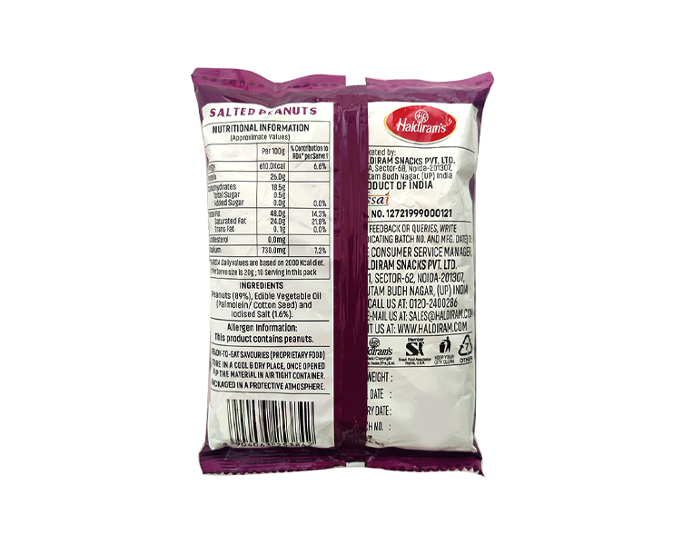 Haldiram's Salted Peanuts Packed with protein and energy, this pack of salted peanuts is the perfect snack for everyone. A great snack any time of day and ideal for everyone.