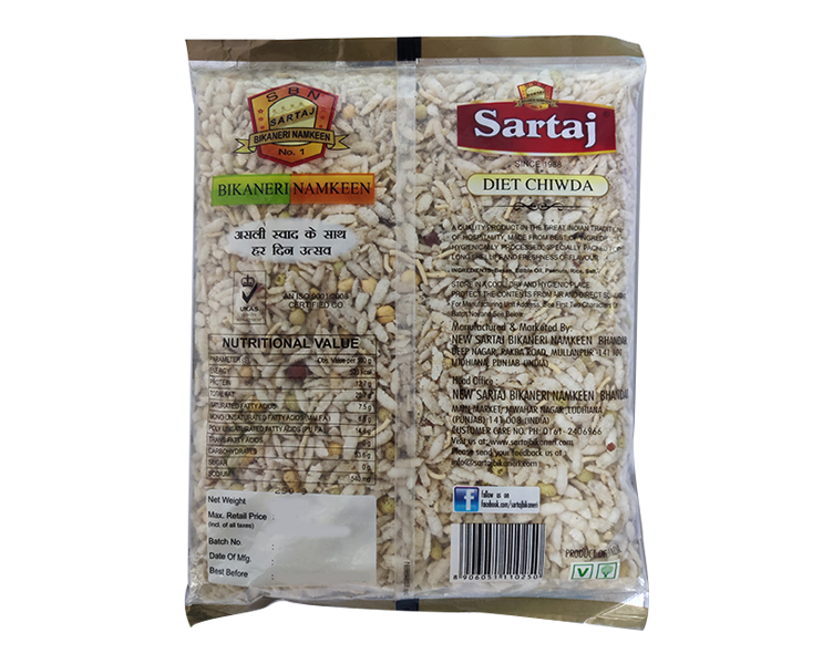 Diet Chivda contains nutritious ingredients and is known for its rich aroma, high purity, delicious taste and crispness. The mouth watering taste and low cholesterol content makes this chivda a perfect snack! Features: Low cholesterol content.