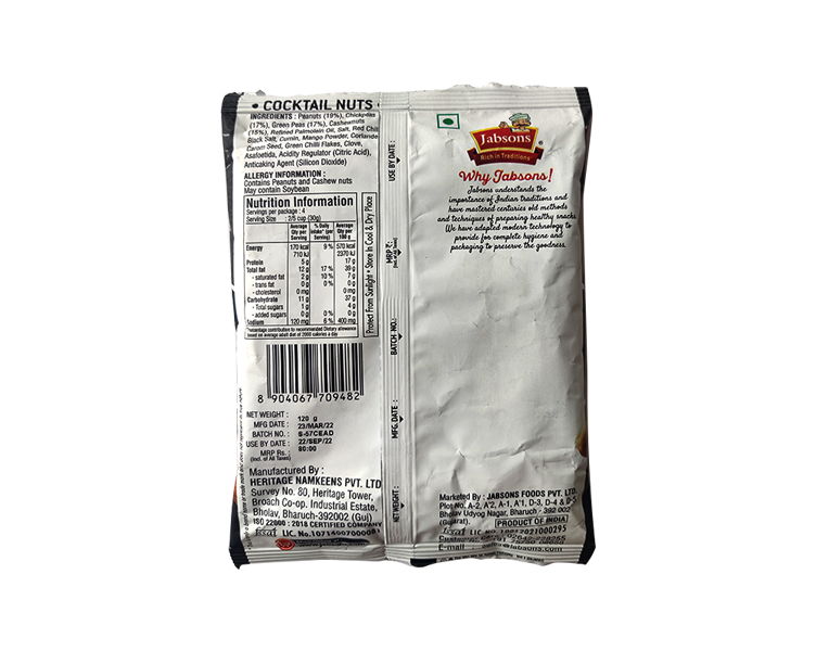 Rich Combination of Shallow Fried Cashew Nuts, Peanuts, Chick Peas and Green Peas.