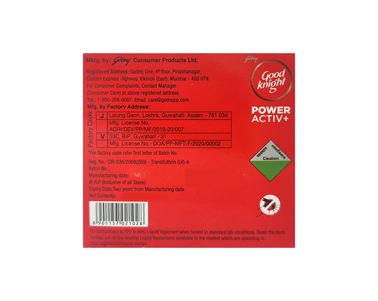 Good Knight Activ + refill is the most trusted mosquito repellent liquid in India. It can be used in all electronic mosquito repellents, but is most effective when used with the Good Knight Activ+.