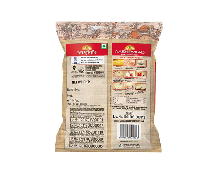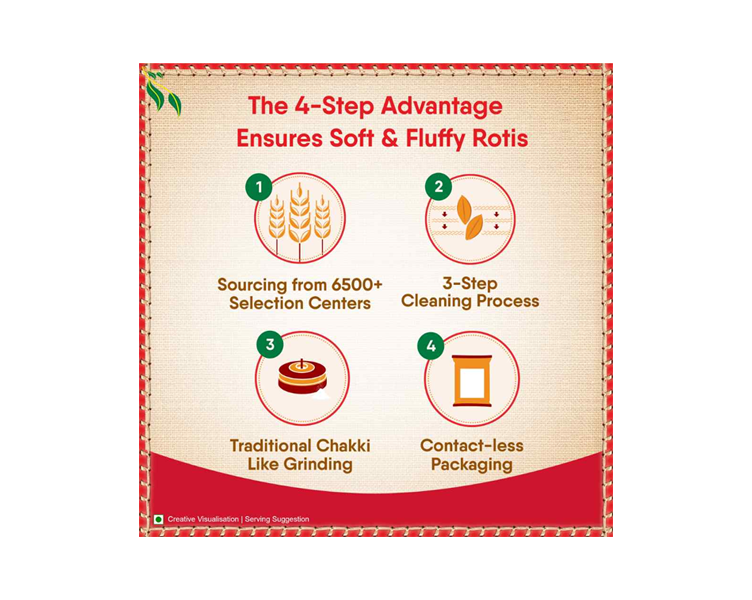 ASHIRVAAD Shudh Chakki Atta helps you make soft, fluffy whole wheat rotis for your family. It is an authentic and pure atta made which undergoes the 4-Step Advantage Process which involves sourcing, cleaning, grinding and packaging. AASHIRVAAD Shudh Chakki Atta is a 100% pure, natural and hygienic product.