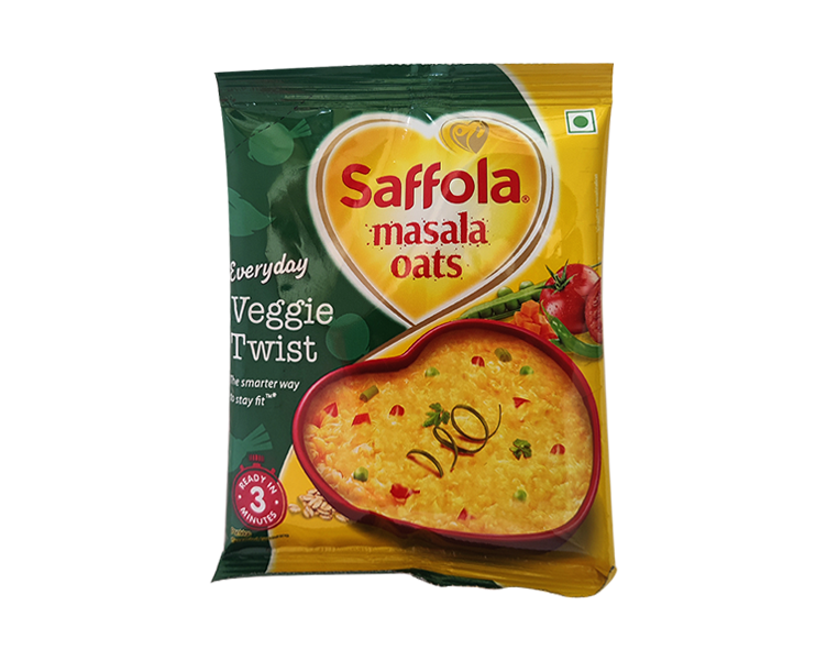Veggie Bend from Saffola Masala Oats features a wealthy and velvety mix of fragrant flavors with a crunchy blend of carrots, peas and french beans. * Appreciate Saffola Masala Oats in a assortment of top notch formulas like Fresh Cutlets, Penne Pasta, or fair as a delightful bowl of delight with crunchy topping like namkeen or peanuts.