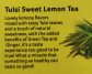 A nice lemon flavor that blends delicious lemon leaves with natural sweetness, plus the benefits of green tea and ginger, it's not a real taste! It's a miracle that very healthy things can be very delicious!
