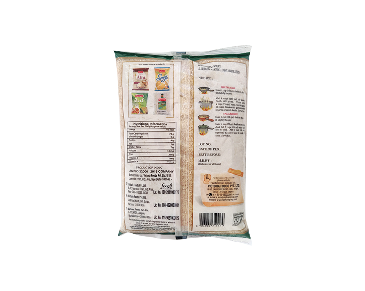 Rajdhani Dalia or broken wheat is also known as cracked wheat, samba rava, godhuma rava, fada and broken wheat. Since it's made with whole grains, dalia is considered a good choice for those trying to cut back on refined grains. In Indian cuisine, it is used to make khichdi, puloa, upma, pongal and porridge.