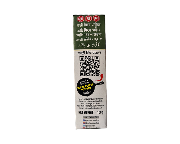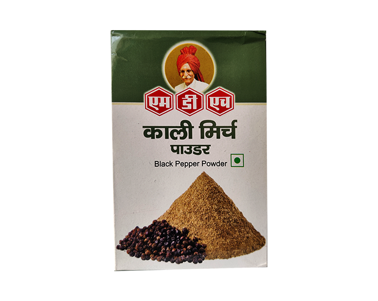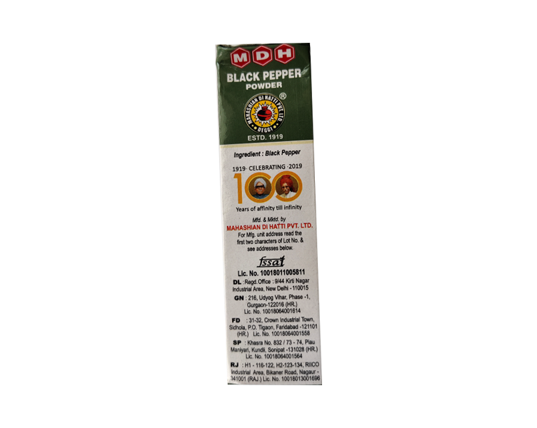 Black Pepper/Kali Mirch is believed to be the king of spices. It lends a strong aroma and taste in food preparations. MDH Black Pepper Powder is made from the choicest black peppers that are grounded to perfection. Give a peppery twist to your cuisine.