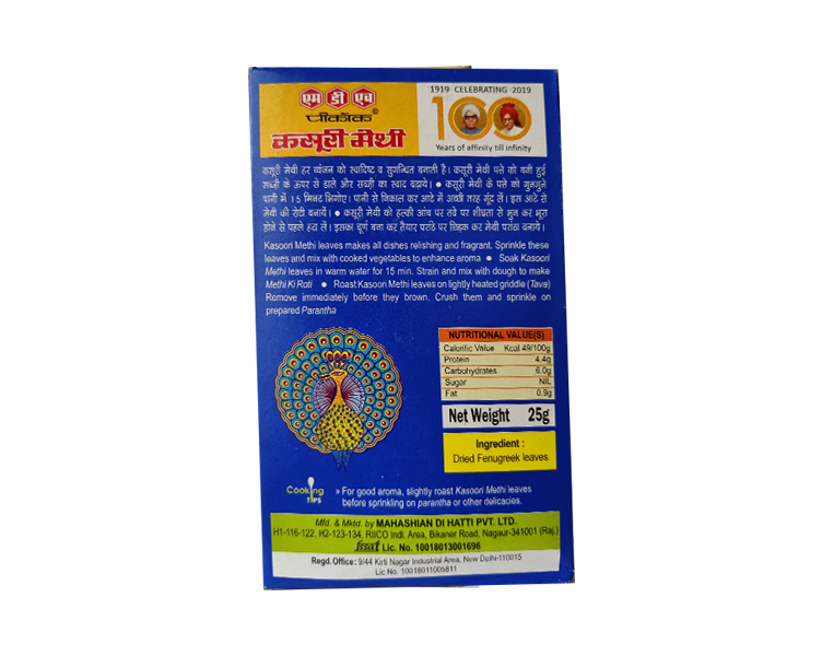 Dried fenugreek leaves: Mash leaves and sprinkle over curries and non-juicy vegetables dishes just before serving for an unforgettable exotic flavour, also add to dough for making Indian breads(Parantha & Naan).